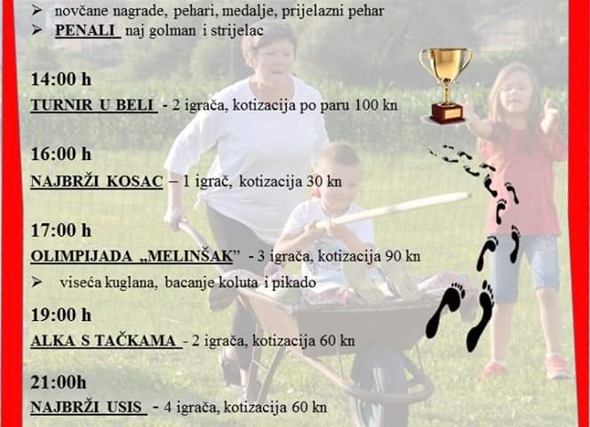 Na igralištu Melinšak u Vrtnjakovcu u organizaciji Udruge žena Vrtnjakovec, 4. srpnja održat će se 10. Tradicijske igre Melinšak. Igre će započeti s malonogometnim turnirom u 10 sati, nakon čega slijede i turnir u beli, natjecanje „tko je najbrži kosac“, Olimpijada Melinšak, neizostavna alka s tačkama, a na kraju i igra najbrži usis. Prihod od natjecanja namijenjen uređenju te opremanju doma i igrališta Melinšak u Vrtnjakovcu. Više o kotizacijama, pravilima natjecanja i načinu prijave zainteresirani mogu pronaći na društvenim mrežama Udruge žena Vrtnjakovec.