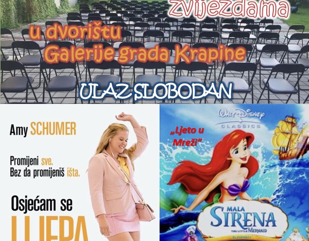Za sve ljubitelje filmske umjetnosti POU Krapina priprema pravu poslasticu ove subote – Kino pod zvijezdama. U dvorištu Galerije grada Krapine bit će prikazana komedija „Osjećam se lijepa“ u 21 sat. Iduće subote, 3. kolovoza bit će prikazan animirani film, klasik Walta Disneya „Mala sirena“. U slučaju kiše projekcija će se održati u Festivalskoj dvorani. Ulaz je besplatan.