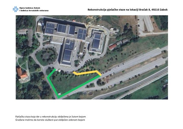 Obavijest o rekonstrukciji – sanaciji pješačke staze od parkirališta prema zgradi Opće bolnice Zabok i bolnice hrvatskih veterana