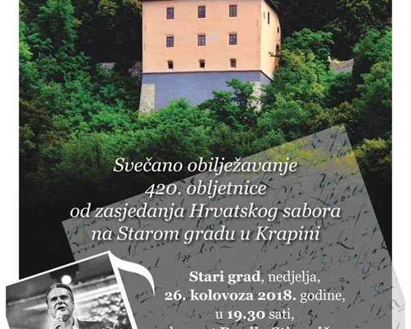 Manifestacija Ljeto u Krapini bliži se kraju. Sve završava u nedjelju, kada će se svečano obilježiti 420. obljetnica od zasjedanja Hrvatskog sabora na Starom gradu. U programu je i koncert Đanija Stipaničeva. Ulaz je besplatan. Zbog najavljenog lošeg vremena, svečanost će se održati u Festivalskoj dvorani u Krapini, s početkom u 19 i 30 sati.