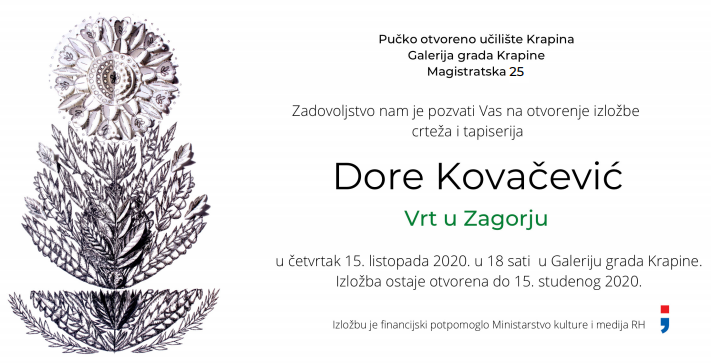U Galeriji grada Krapine ovog četvrtka u 18 sati je otvorenje izložbe crteža i tapiserija Dore Kovačević, pod nazivom Vrt u Zagorju. Dora Kovačević rođena je […]