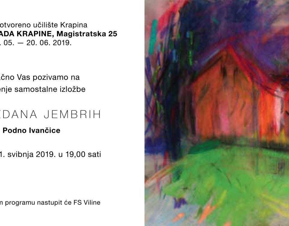 U Galeriji Grada Krapine ovaj se petak, 31. svibnja otvara samostalna izložba Zvjezdane Jembrih, pod nazivom „Podno Ivančice“. Kako sama autorica kaže, radi se o mitskim […]
