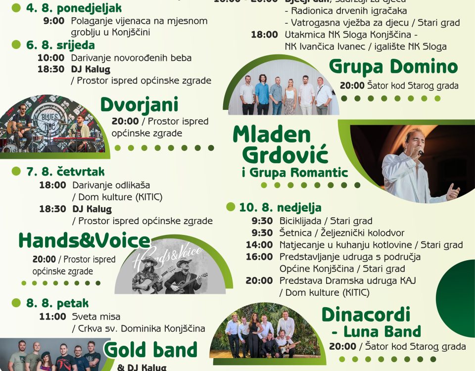 Kolovoz i ove godine u Konjščini donosi tradicionalno slavlje povodom Dana Općine Konjščina i proslave župe sv. Dominika. Program započinje ovoga petka, 1. kolovoza, svečanom sjednicom […]
