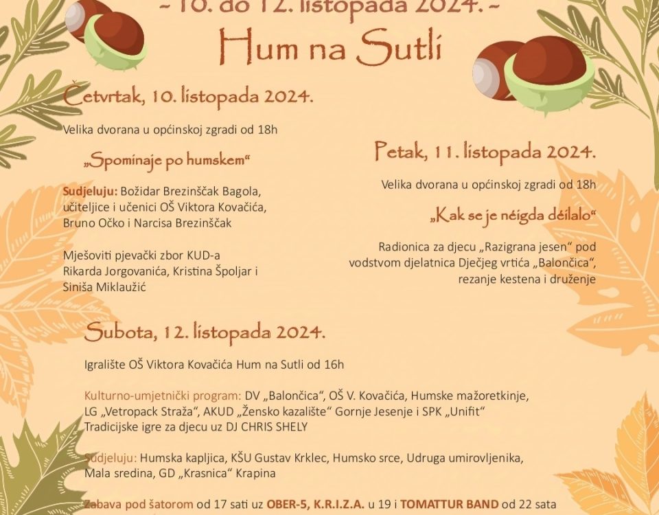 U Humu na Sutli će se od 10. do 12. listopada održavati manifestacija „Gréjmo na kostaĵe 2024.“ u organizaciji Humske udruge mladih i Savjeta mladih Općine […]