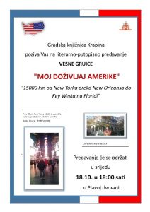 U okviru programa Mjesec hrvatske knjige, u Gradskoj knjižnici Krapina danas organiziraju dva događanja. U 18 sati počinje literarno – putopisno predavanje „Miriše na kišu…“, Vesne Gruice. Od 16 sati je na rasporedu „Drvo stihova“ – radionica izrade stabla od kartona, rezanje lišća od kolaž papira te upisivanje jesenskih stihova.