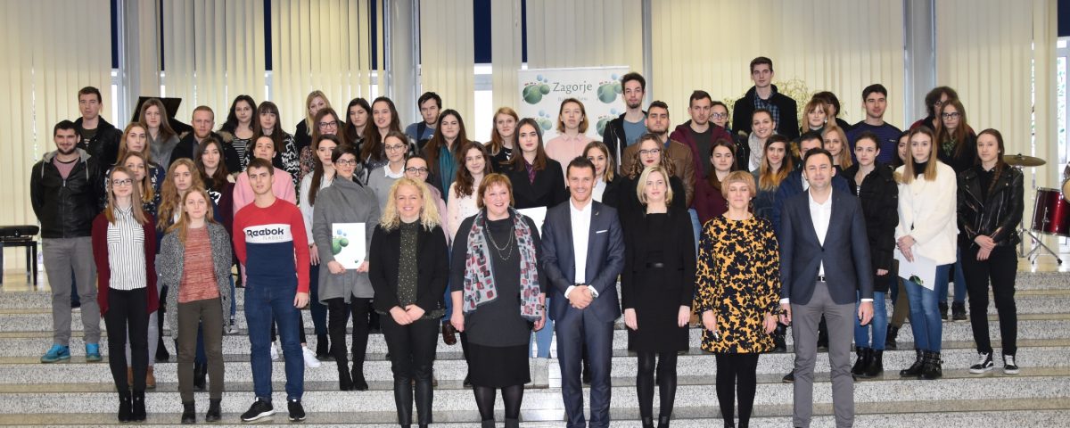 U prostorijama Gimnazije Antuna Gustava Matoša u subotu je u Zaboku održana svečana dodjela ovogodišnjih studentskih stipendija Krapinsko-zagorske županije. Uručena je 61 stipendija u tri kategorije – nadareni studenti, stipendije po socijalnom kriteriju i stipendije za deficitarna zanimanja. Krapinsko-zagorska županija će ove godine, zajedno s postojećim stipendistima, ukupno stipendirati njih 99. Okupljene studente i njihove roditelje je na svečanosti pozdravila zamjenica župana za društvene djelatnosti Jasna Petek, koja je ovom prilikom podsjetila kako će Krapinsko-zagorska županija ove godine za studentske i učeničke stipendije izdvojiti milijun i 300 tisuća kuna. -Svake godine povećavamo taj iznos jer smatramo da je ulaganje u obrazovanje izuzetno važno – ako želimo razvijati naše Zagorje moramo ulagati u obrazovanje i slijediti gospodarske trendove. –rekla je Petek.