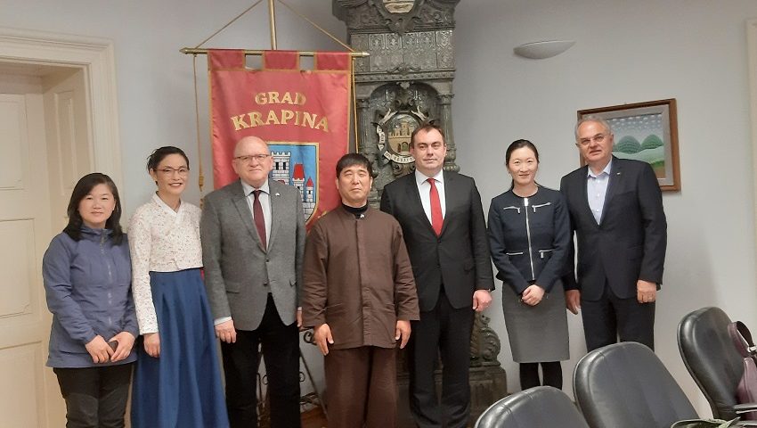 Gradonačelnik Zoran Gregurović danas je ugostio izaslanstvo Južne Koreje koje su činili arhitekti, galeristi, grafički dizajneri i fotografi. Prijem je održan u okviru dvotjednog studijskog posjeta Hrvatskoj s ciljem razmjene prijedloga mogućih projekata, promicanja korejsko-hrvatskih kulturalnih veza i širenja mreže poslovnih kontakata te jačanja suradnje u raznim područjima. Nakon prijema kod gradonačelnika izaslanstvo je posjetilo Muzej krapinskih neandertalaca.