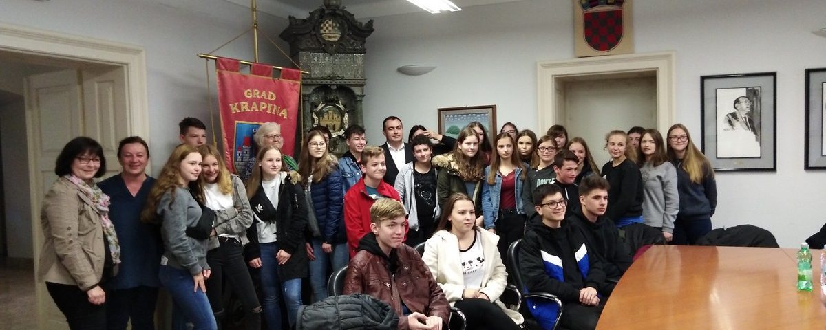 Gradonačelnik Krapine Zoran Gregurović jučer je u gradskoj vijećnici primio učenike iz Gottfried-Kinkel-Realschule iz njemačkog grada Erftstadta koji su u uzvratnom posjetu učenicima Osnovne škole “Ljudevit Gaj“ i Srednje škole Krapina. Razmjena učenika jedna je od brojnih aktivnosti proizašla iz programa fakultativne nastave, “Njemački jezik – nastava za Njemačku jezičnu diplomu”. Projekt se u Srednjoj školi Krapina provodi više od 15 godina, a u međuvremenu mu je pristupila i OŠ „Ljudevita Gaj“. Projekt razmjene učenika financijski podupiru resorno Ministarstvo, Krapinsko-zagorske županija, Grad Krapina i sponzori. Ovo je inače treći uzvratni posjet učenika i njihovih mentora iz njemačke škole partnera, rekla je Jasna Sutlović profesorica njemačkog jezika u Srednjoj školi Krapina. Gradonačelnik Zoran Gregurović pozdravio je ovakvu suradnju škola, kao i druge slične projekte. Inače, i ovom je prigodom napomenuto kako bi ovo partnerstvo škola moglo prerasti u partnerstvo gradova Krapine i Erftstadta.