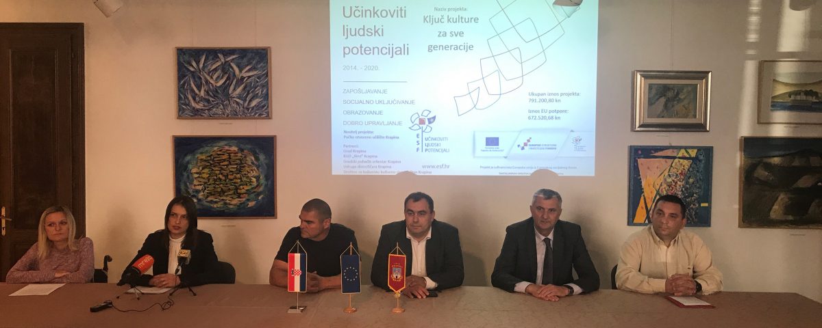 Pučko otvoreno učilište Krapina počelo je s provedbom novog projekta „Ključ kulture za sve generacije“ vrijednog 791.200,80 kuna. POU je sklopilo Ugovor s Ministarstvom kulture i Nacionalnom zakladom za razvoj civilnoga društva o 100 postotnom financiranju Projekta. EU sufinancira 85% projektnih troškova (672.520,68 kuna) u sklopu Operativnog programa Učinkoviti ljudski potencijali iz sredstava Europskog socijalnog fonda, dok ostatak od 15% plaća Ministarstvo kulture iz Državnog proračuna Republike Hrvatske. Projekt se provodi od 29. listopada 2018. godine do 28. listopada 2020. godine. Partneri Pučkom otvorenom učilištu Krapina su Grad Krapina, Kulturno umjetničko društvo „Ilirci“ Krapina, Udruga distrofičara Krapina, Društvo za kajkavsko kulturno stvaralaštvo Krapina i Gradski puhački orkestar Krapina. Projektom se želi doprinijeti razvoju dobrog upravljanja u kulturi grada Krapine. Prilikom predstavljanja Projekta na konferenciji za medije održanoj danas u Galeriji grada Krapini, ravnateljica POU Krapina Grozdana Pavlović je rekla -Provodit ćemo niz aktivnosti: od suradnje, edukacija i podizanja javne svijesti u području upravljanja u kulturi do pripreme, provedbe i razmjene edukacijskih i kulturno – umjetničkih programa. Ciljne skupine educirat će se o dobrom upravljanju u kulturi, donijet će se mjere za razvoj sudioničkog upravljanja u kulturi, partneri će se umrežiti. Građani će se uključiti u planiranje i provedbu edukacijskih programa u umjetnosti i kulturi te u planiranje i provedbu novih kulturno – umjetničkih programa u Krapini“.- dodala je također.