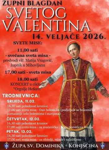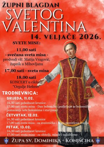 Župa sv. Dominika u Konjščini priprema se za svečano obilježavanje župnog blagdana svetog Valentina, koji će se održati u subotu, 14. veljače 2026. godine.