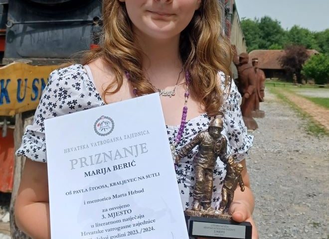 Na natječaju Hrvatske vatrogasne zajednice za likovni, literarni i foto uradak na temu vatrogastva učenica 6. razreda OŠ Pavao Štoos iz Kraljevca na Sutli Marija Berić osvojila je treće mjesto u kategoriji literarni radovi za pjesmu na kajkavskom pod nazivom „Vatrogasci Fala“. Marijina mentorica bila je učiteljica hrvatskog jezika Marta Hrbud. Hrvatska vatrogasna zajednica je dodjelu nagrada upriličila u Domu kulture u Velikom Grđevcu, a nagradu joj je uručio glavni vatrogasni zapovjednik RH Slavko Tucaković. Natječaj je održan pod pokroviteljstvom Ministarstva znanosti, obrazovanja i mladih, a na njega je bilo prijavljeno više od tisuću radova iz cijele Hrvatske. Dodjeli je prisustvovao zapovjednik VZ KZŽ Marijan Lovrenčić, a za napomenuti je da je nagrađena učenica Marija Berić ujedino članica podmladka DVD-a Kačkovec iz VZO Kraljevec na Sutli.
