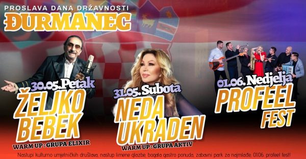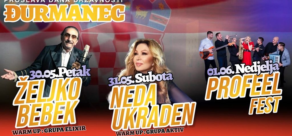 U subotu, 31. svibnja, na pozornicu stiže popularna Neda Ukraden, a večer će otvoriti Grupa Aktiv.