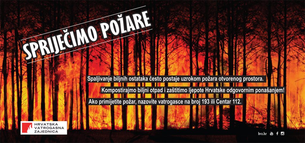 Nakon uočavanja požara odmah nazovite vatrogasce na broj 193, Centar 112 ili Policiju na 192 – poručuju iz Hrvatske vatrogasne zajednice.
