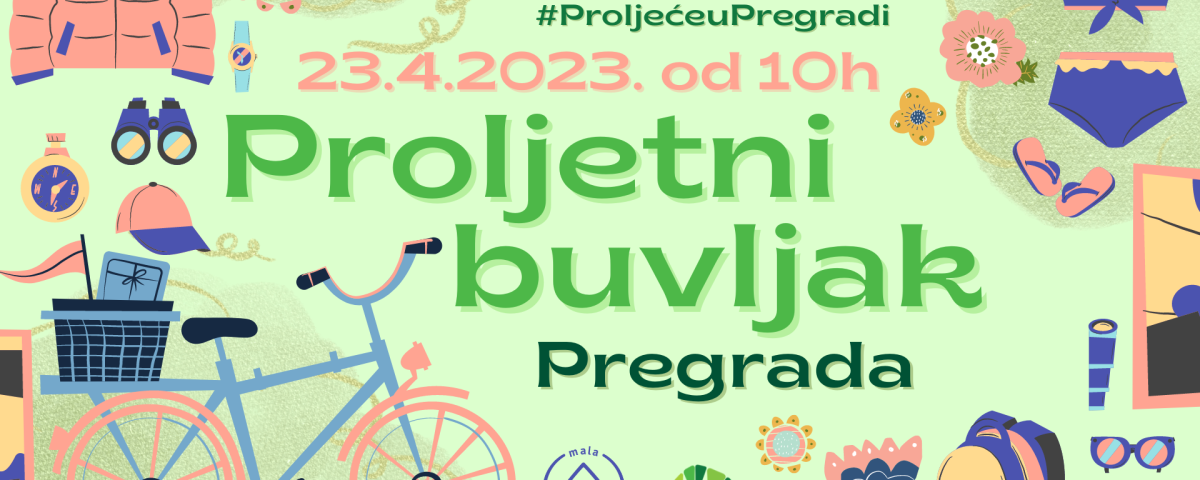 Ove nedjelje, 23. travnja od 10 sati će se na Trgu Gospe Kunagorske u Pregradi održati prvi  Proljetni buvljak. Organizator je Udruga Mala sredina, a događanje se odvija u sklopu programa Proljeće u Pregradi čiji je organizator Grad Pregrada. Cilj Buvljaka je ne samo proljetno čišćenje, već potaknuti ljude da međusobno komuniciraju, povežu se i međusobno upoznaju na nešto drugačiji način te da se općenito potakne solidarnost građana. Ovim Buvljakom se Udruga Mala sredina priključila inicijativi Good Deeds Day. Prijave su do 21. travnja preko online prijave: https://forms.gle/rNzzKAbQj4RfYT2QA ili na mail mala.sredina@gmail.com. „Ako neke stvari ne želite baciti, a smatrate da bi mogle usrećiti nekoga drugoga, buvljak je mjesto za vas“, poručuju organizatori.