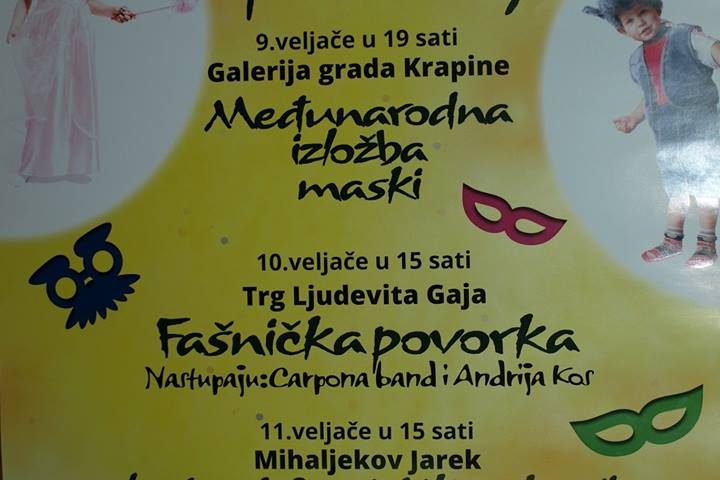 Pred nama je Fašnik. Većina fašničkih događanja u Zagorju bit će održana ovog vikenda pa tako i u Krapini-već tradicionalne Krapinske fašničke špelancije. U petak 9. veljače u sklopu fašničkih špelancija u 19 sati u Galeriji grada Krapine je otvorenje Međunarodne izložbe maski. Krapinske fašničke špelancije održat će se u subotu, 10. veljače na Trgu Ljudevita Gaja u Krapini s početkom u 15 sati. Uz veselu fašničku povorku, bit će tu i bogat program i tombola. Fašničke špelancije nastavljaju se 11. veljače u Mihaljekovom Jarku s početkom u 15 sati. Više na web stranicama Grada Krapine i TZ Grada Krapine.