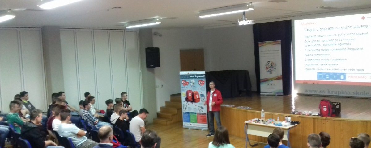 Gradsko društvo Crvenog križa Krapina održalo je ovih dana u Srednjoj školi Krapina radionicu „Informirani pripremljeni zajedno- Set2go” u sklopu obilježavanja Dana zdravlja i sigurnosti u školi. Na radionici učenici su informirani o važnosti pripreme obiteljskog ruksaka za krizne situacije, koji sadržava osnove artikle nužne za prve trenutke nakon kriznog događaja. Radionicu je održao ravnatelj GDCK Krapina, Davor Šimunović. Prisustvovalo je preko 150 učenika, te svi predstavnici razrednih odjela.
