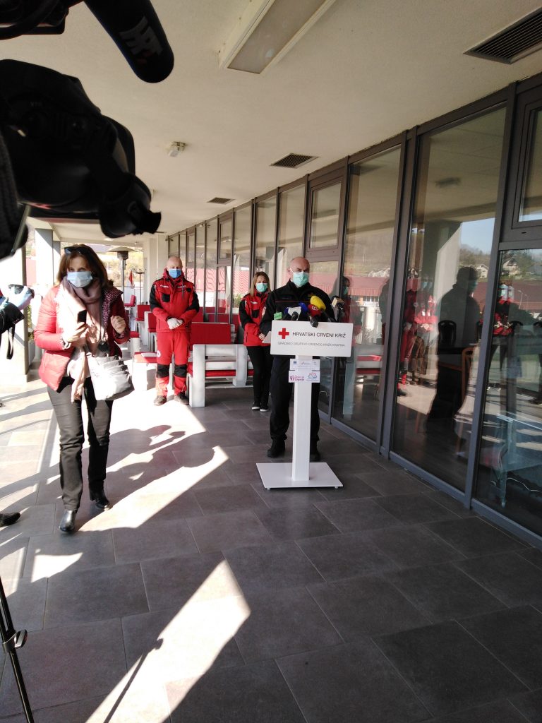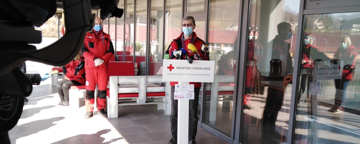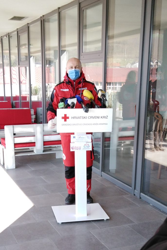 Izvršni predsjednik Hrvatskog crvenog križa Robert Markt te ravnatelj Civilne zaštite i pomoćnik ministra unutarnjih poslova Damir Trut danas su došli u Krapinu pružiti podršku djelatnicima i volonterima Crvenog križa Krapinsko-zagorske županije. Ponosan sam i sretan što Hrvatski crveni križ ima priliku i danas vam pokazati svu snagu svojeg djelovanja i prilagodljivost koju ima kako bi mogao i u ovim trenutcima pomoći u organizaciji života – rekao je izvršni predsjednik Hrvatskog crvenog križa Robert Markt na početku svog obraćanja te uputio zahvalu svim volonterima kao i svim strukturama vlasti na području Krapinsko-zagorske županije. Rekao je kako je razlog dolaska u Krapinu taj što je Gradsko društvo Crvenog križa Krapina započelo s jednim pilot-projektom koji će sad preslikati na cijelu Republiku Hrvatsku, a odnosi se na dostavu hrane i potrepština osobama koje su covid pozitivne i koje su se odlučile na liječenje u sklopu svojega doma. Ravnatelj županijskog i Gradskog društva Crvenog križa Krapina Davor Šimunović rekao je kako imaju jedan call centar gdje se ljudi javljaju, a zatim se pozivi selektiraju na one kojima idu gerontodomaćice i na one kojima idu posebni timovi za Covid – oni su još opremljeniji i imaju sve upute od Hrvatskog zavoda za javno zdravstvo i epidemiologa – istaknuo je Šimunović. Ravnatelj Civilne zaštite i pomoćnik ministra unutarnjih poslova Damir Trut rekao je da je u sustavu civilne zaštite aktivno oko 18 600 ljudi u ovom trenutku, i to kroz operativne snage, snage vatrogastva, crvenog križa, Hrvatske gorske službe spašavanja, stožera civilne zaštite, policije i Hrvatske vojske. Naglasio je izuzetno dobru koordinaciju između svih snaga. „Puno je tu zahtjeva prema sustavu koji se odrađuje svakodnevno i svakodnevno daje svoje rezultate.“ – rekao je Trut.