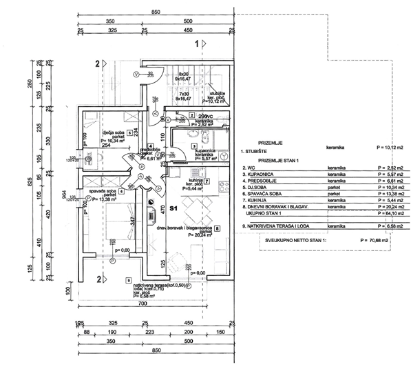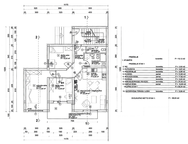 • Stanovi: 12 stanova; dvosobni i trosobni od 70,68 m2 i 86,92 m2