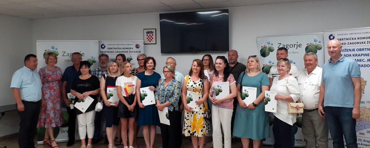 U prostorijama Obrtničke komore Krapinsko-zagorske županije u Krapini održana je dodjela ugovora korisnicima koji su ostvarili pravo na županijsku potporu za tradicijske obrte. Potporu ukupne vrijednosti 43.573 eura ostvarilo je ukupno 40 tradicijskih obrta. Najprije je u županijskom proračunu bilo osigurano 35.000 eura, no zbog velikog interesa obrtnika župan Željko Kolar donio je odluku o većem iznosu od 43.573 eura, što je za 66 posto više u odnosu na odobreni iznos potpore u prošloj godini. Županija je od 2012. godine do danas odobrila ukupno 270 204 eura potpora za tradicijske i umjetničke obrte. Potpore su ove godine dobili krojači, medičari, licitari, dimnjačari, postolari, keramičari, obrti koji se bave izradom drvenih igračaka, nakita, proizvoda od kože te izradom voštanih ukrasa. Ugovore su korisnicima uručili župan Željko Kolar i predsjednik Obrtničke komore Krapinsko-zagorske županije Nenad Kučiš. Župan Željko Kolar pozvao je obrtnike da sudjeluju na sajmovima te da se javljaju i na druge županijske natječaje. Posebno se osvrnuo na inicijativu Krapinsko-zagorske županije da se PDV za tradicijske i umjetničke obrte ukine ili bude simboličnih 5 posto. U ime korisnika potpora zahvalu je uputio Veljko Osrečak. Dodjeli potpora prisustvovala je i pročelnica Upravnog odjela za gospodarstvo, poljoprivredu, turizam, promet i komunalnu infrastrukturu KZŽ Sanja Mihovilić.