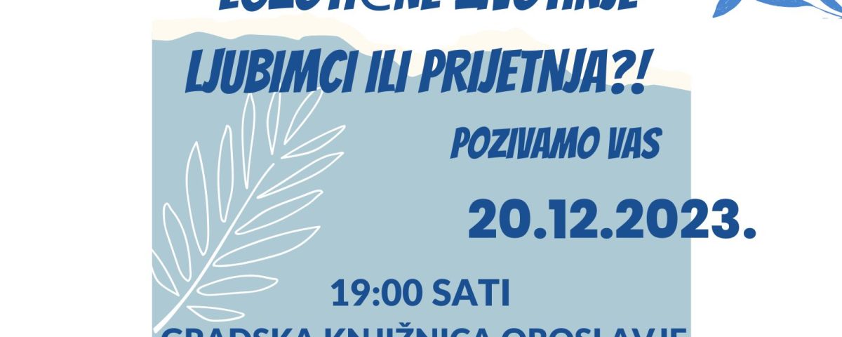 U organizaciji Udruge Petrože Krušljevo Selo danas će se u Gradskoj knjižnici Oroslavje održati radionica o egzotičnim životinjama pod nazivom „Egzotične životinje-ljubimci ili prijetnja“. Predavanje će održati profesorica veterine Danijela Horvatek-Tomić koja će sve zainteresirane upoznati sa egzotičnim životinjama kao kućnim ljubimcima, kako se brinuti o njima te što učiniti u slučaju da ih više ne želite imati i držati u kući ili stanu kao ljubimce. Početak radionice je u 19 sati.