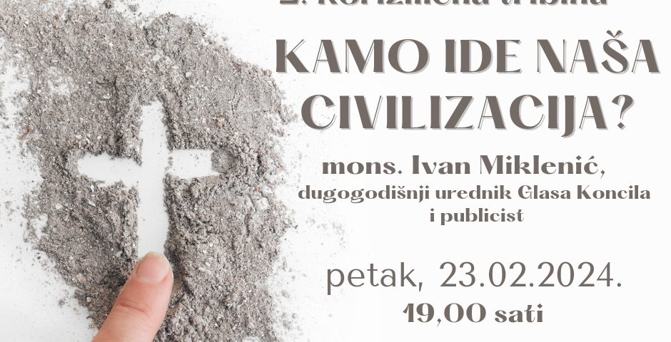 Župa svetog Dominika u Konjščini organizira 2. korizmenu tribinu, ovaj put na temu „Kamo ide naša civilizacija?”, najavila je Zagrebačka nadbiskupija. Tribina će se održati u petak, 23. veljače, u 19 sati u Kulturnom i turističko-informativnom centru (Dom kulture) u Konjščini. Predavač je mons. Ivan Miklenić, dugogodišnji urednik Glasa Koncila i publicist.