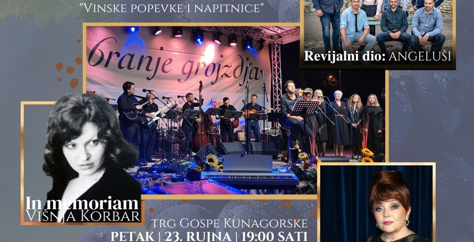 Kao dio manifestacije „Branje grozdja“ večeras se u Pregradi na Trgu Gospe Kunagorske održava Festival vinskih popevki i napitnica. Šesto izdanje ovog festivala donosi nove i već izvođene skladbe, u njihovim originalnim izvedbama ili u novim obradama prilagođene za izvođače. Izvođače će pratiti stručni sud koji će u natjecateljskom dijelu izabrati tri najbolje izvedene u svakoj kategoriji te najbolju izvedbu i najbolje autore. U revijalnom dijelu nastupaju Angeluši, a nakon festivala održat će se program u spomen na Pregračanku Višnju Korbar u kojem će nastupiti glazbena diva Zdenka Kovačiček. Početak je u 19 sati.