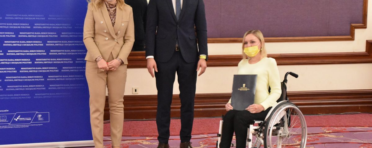 Ministar rada, mirovinskoga sustava, obitelji i socijalne politike Josip Aladrović uručio je 52 ugovora, vrijednih 29,8 milijuna kuna, udrugama koje pružaju usluge asistencije osobama s invaliditetom na području Zagreba, zagrebačkog prstena i sjeverozapadne Hrvatske. Jedna od udruga je i Udruga distrofičara Krapina čija je predsjednica Mirjana Janžek potpisala ugovor za nastavak pružanja usluge asistencije za 14 korisnika iduće dvije godine, te samim time i nastavak rada za 14 osobnih asistenata. Na natječaju su ostvarili potporu u iznosu 830 tisuća kuna za program „Osobni asistent za oboljele od mišićne distrofije”. Još su tri udruge s područja naše županije ostvarile potpore: Društvo osoba oštećena sluha Krapinsko-zagorske županije za program „Tumač hrvatskog znakovnog jezika u Krapinsko-zagorskoj županiji” dobilo je 93 tisuće kuna, Udruga slijepih KZŽ je za program „Slijepima je pomoć najpotrebitija” dobila 125 tisuća kuna, a Društvo multiple skleroze Krapinsko-zagorske županije dobilo je 420 tisuća kuna za program „O-Amigo”. Donošenjem novog Zakona o socijalnoj skrbi proširen je krug osoba kojima se može priznati pravo na status njegovatelja i povećane su naknade u iznosu od 4500 kuna, a ministar Aladrović je najavio i daljnje povećanje zapošljavanja osoba s invaliditetom kroz financiranje radionica i poticaje na tržištu rada.