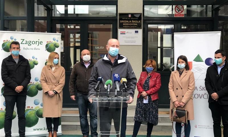 U Bedekovčini je jučer održana završna konferencija projekta energetske obnove Srednje škole Bedekovčina. Radi se o projektu čiji je planirani rezultat postizanje uštede toplinske energije od 53,87 posto, a ukupna vrijednost je 8,6 milijuna kuna. U okviru Operativnog programa Konkurentnost i kohezija osigurano je 4 milijuna kuna, Ministarstvo regionalnog razvoja osiguralo je 1,8 milijuna i KZŽ 2,7 milijuna kuna. Prema riječima ravnateljice škole Vere Hrvoj obnova je trajala oko 8 mjeseci, a pripremni radovi gotovo dvije godine. Dodatno su, izvan projekta, zahvaljujući osnivaču, obnovljeni i podovi, a potrebno je još obnoviti instalacije. Načelnik Darko Ban izrazio je zadovoljstvo učinjenim kao i želju da buduće generacije imaju priliku i uvjete stjecati svoja znanja i doprinijeti razvoju Zagorja i Hrvatske. Intencija je da u suradnji s Veleučilištem Krapina zaživi višegodišnja želja o ponovnom pokretanju više građevinske škole. Osim što su stvoreni bolji uvjeti za rad u školi, na bolje je promijenjena i vizura Bedekovčine, istaknuo je župan Željko Kolar. Rekao je i kako je strukovno obrazovanje važno za gospodarstvo KZŽ te da je SŠ Bedekovčina rasadnik kadrova za malo i srednje poduzetništvo. Želja je, rekao je župan da i ova škola postane Centar kompetentnosti. Ujedno je izrazio nadu da će Ministarstvo raspisati i treću fazu dodjele sredstava za energetsku obnovu u kojoj županija namjerava prijaviti najmanje šest škola, što znači investicije u minimalnom iznosu od 60 milijuna kuna.